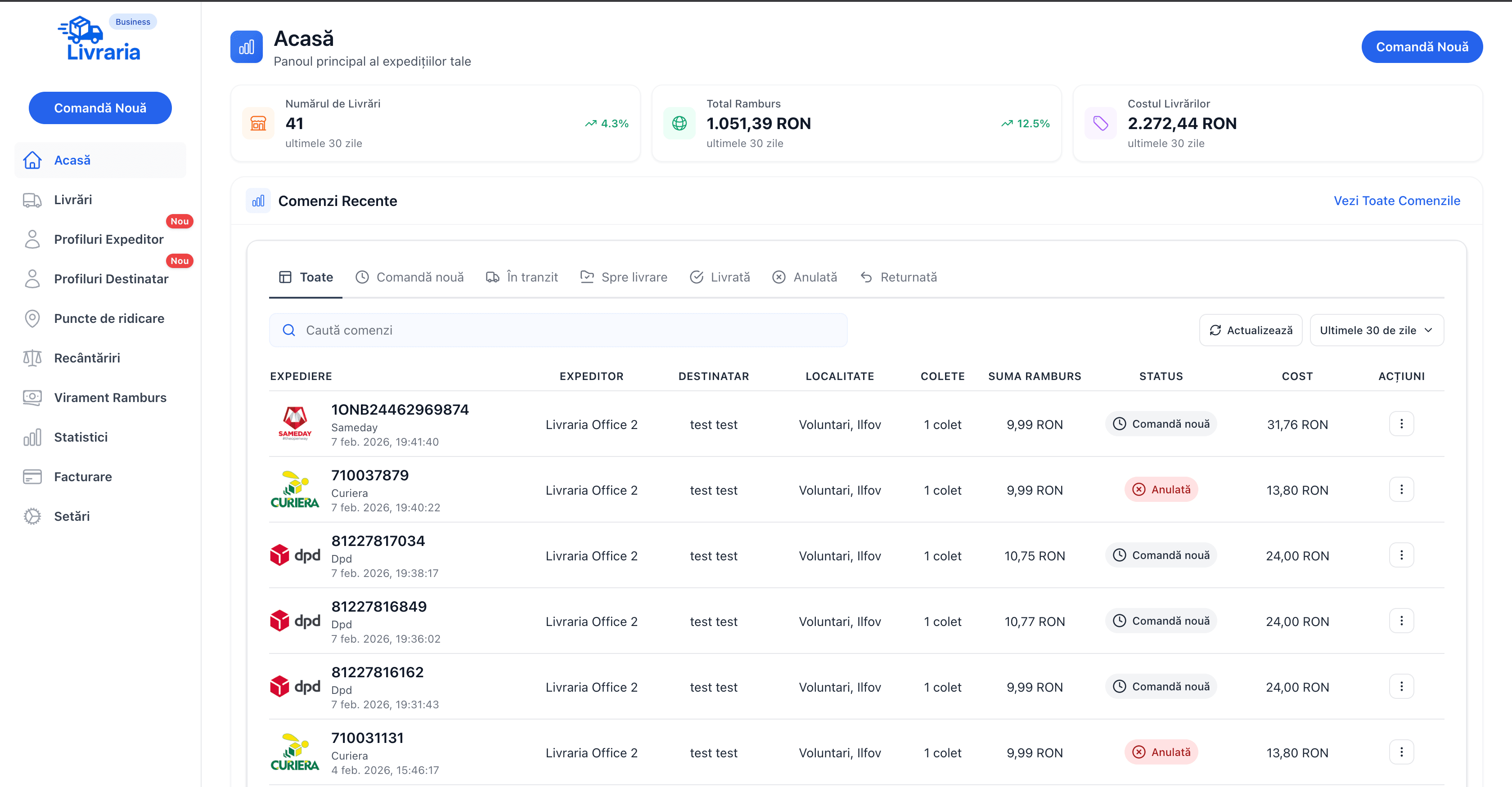 Acces instant la statistici despre livrări, costuri și performanța curierilor. Ia decizii informate pentru afacerea ta.